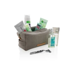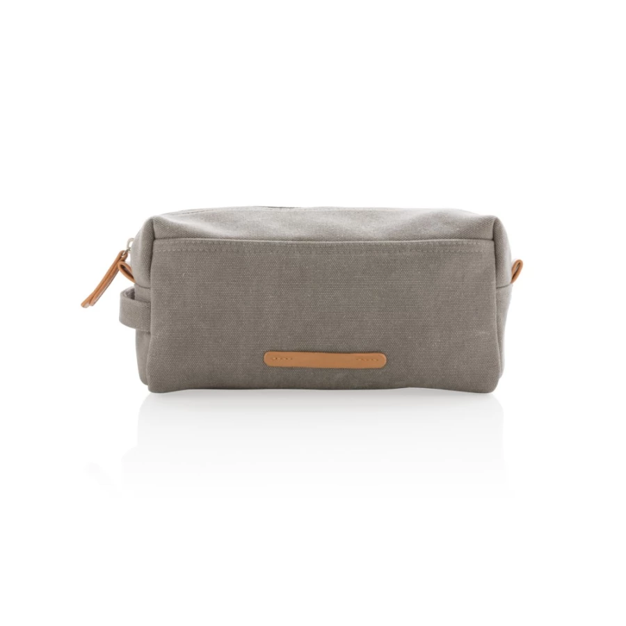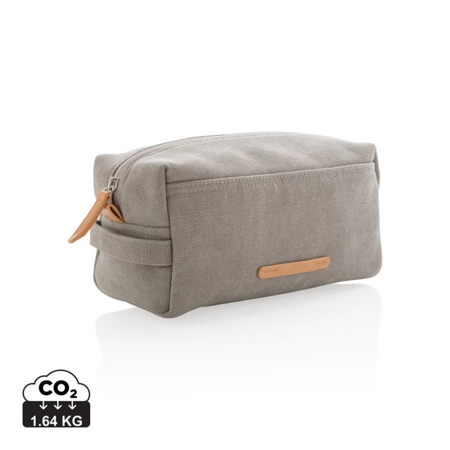 Kosmetyczka z naturalnego i wytrzymałego płótna, kompaktowy rozmiar, nie zawiera PVC, ślad węglowy produktu: 1,64 kg CO2