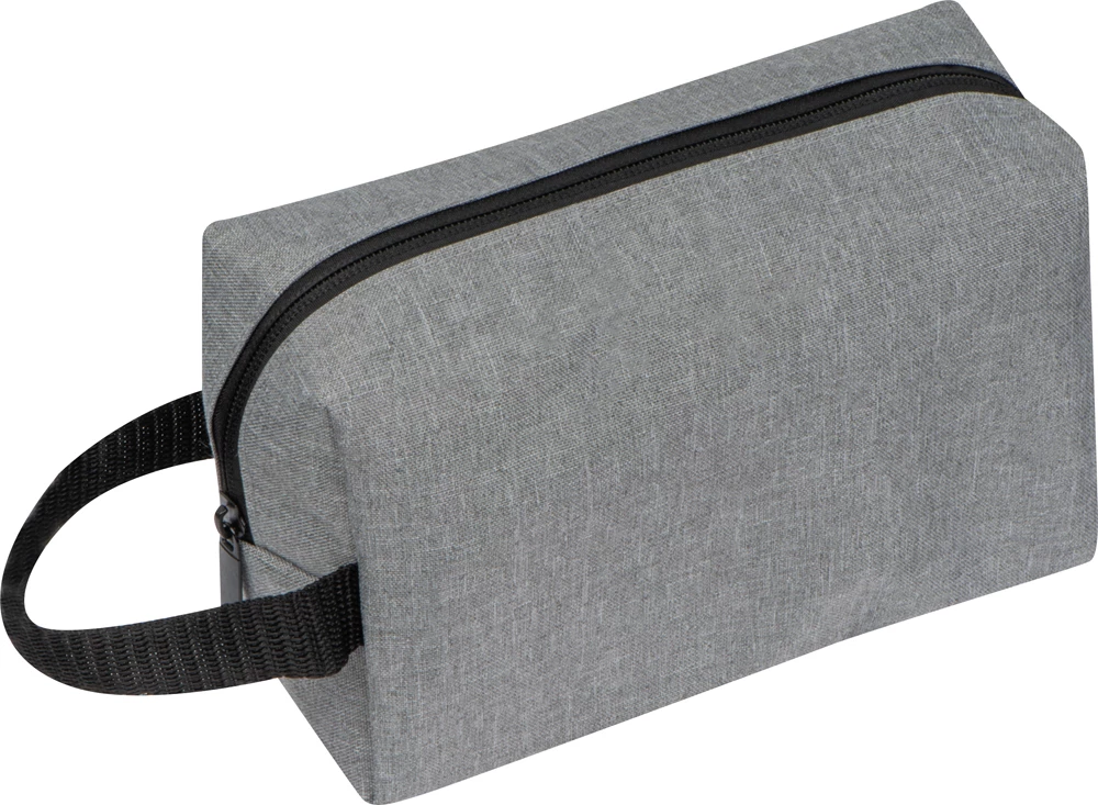 Kosmetyczka wykonana z poliestru pochodzącego z recyklingu, zamykana na zamek, z wygodnym uchwytem do przenoszenia.