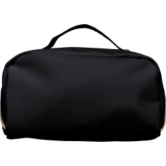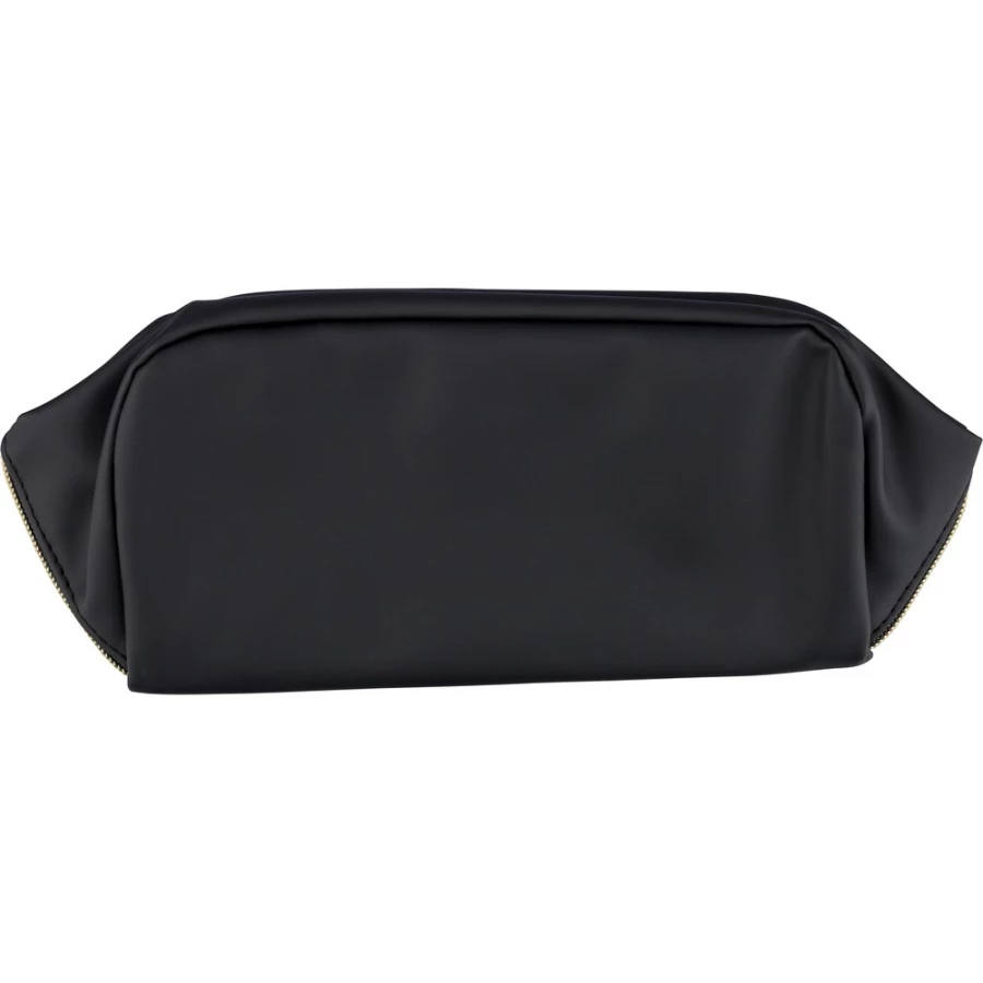 Kosmetyczka zapinana na zamek, krótki uchwyt do noszenia, podszewka z poliestru 210D w środku, duża kieszeń zapinana na zamek, w środku mała kieszeń zapinana na zamek ikona recyklingu na metce, produkt wykonany z PU z recyklingu i poliestru