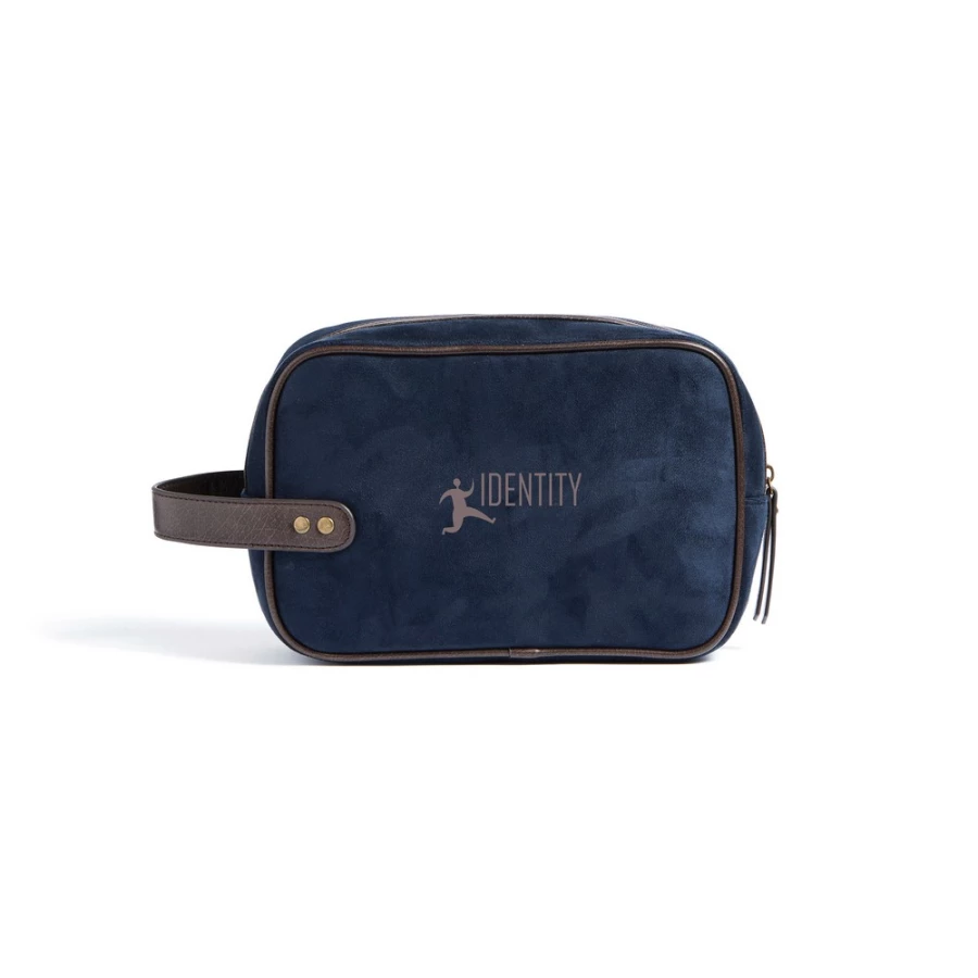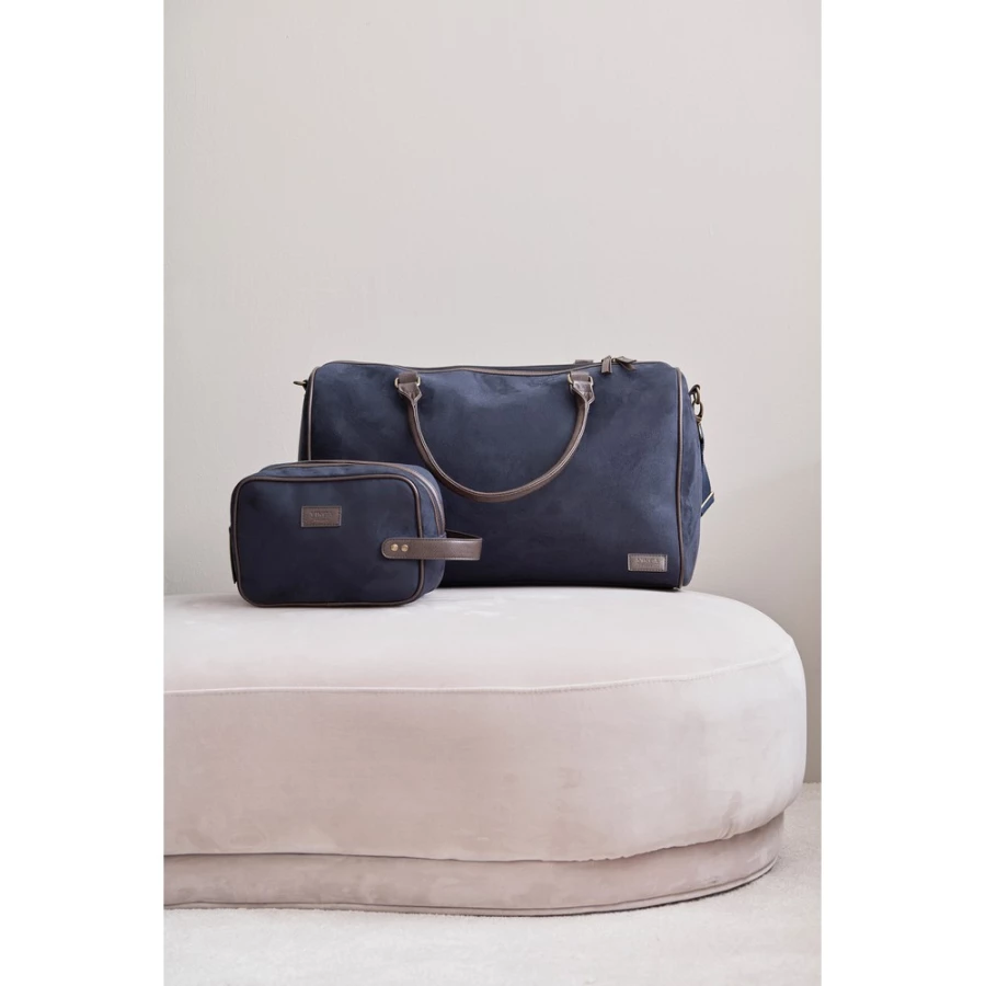 Kosmetyczka, wykonana z imitacji zamszu, detale ze skóry z PU oraz mosiądzu