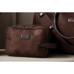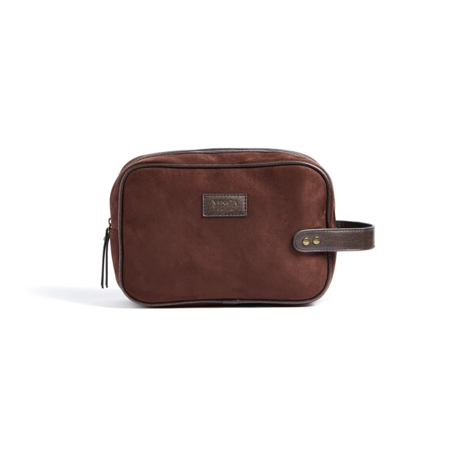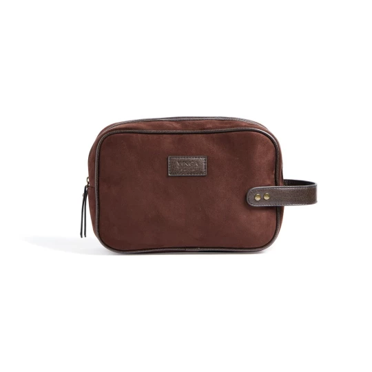 Kosmetyczka, wykonana z imitacji zamszu, detale ze skóry z PU oraz mosiądzu