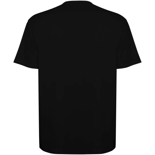 Ovesizowa koszulka z krótkim rękawem. Okrągły kołnierzyk wykończony ściągaczem 2x1 z dopasowanymi obszyciami szwów. Szwy boczne. Szerokie podwójne szwy na rękawach i u dołu. Usuwalna etykieta.