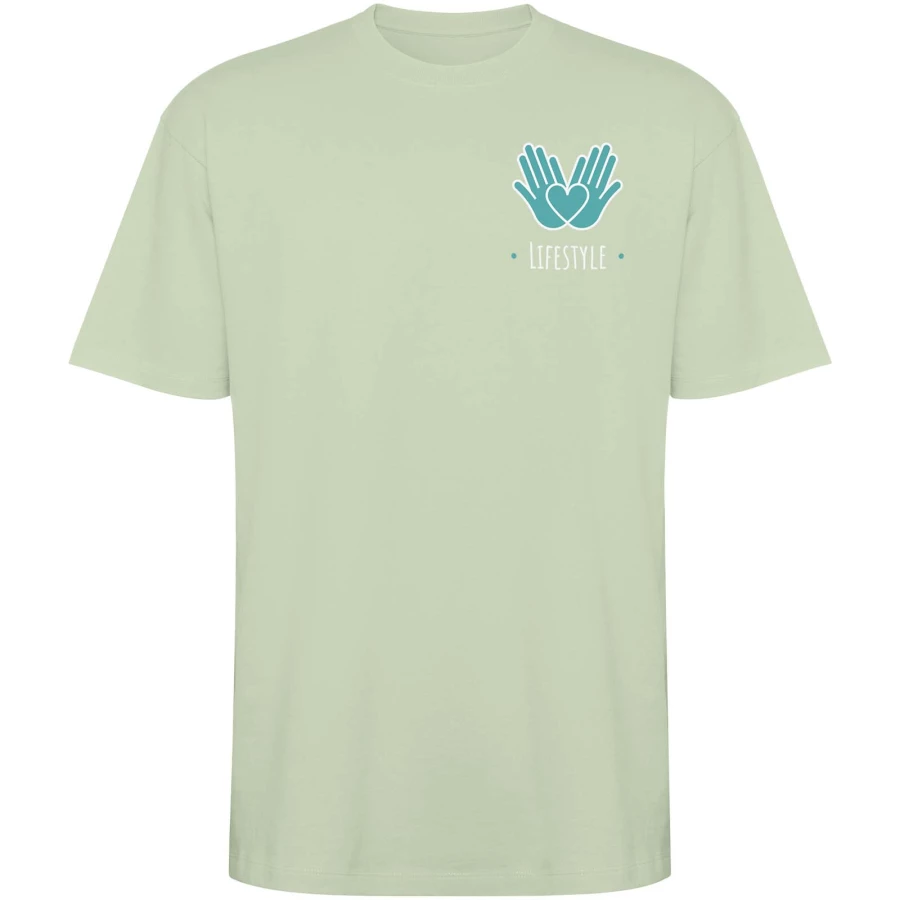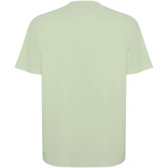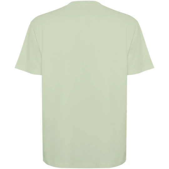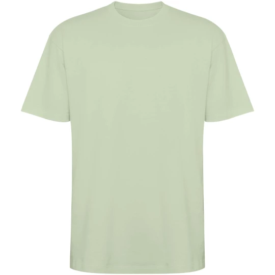 Ovesizowa koszulka z krótkim rękawem. Okrągły kołnierzyk wykończony ściągaczem 2x1 z dopasowanymi obszyciami szwów. Szwy boczne. Szerokie podwójne szwy na rękawach i u dołu. Usuwalna etykieta.