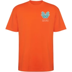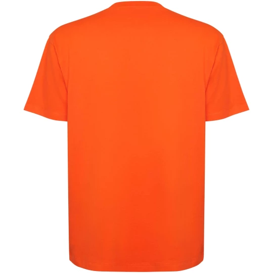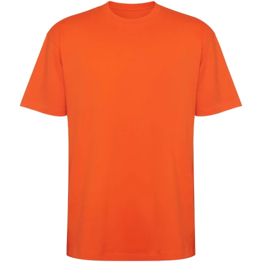Ovesizowa koszulka z krótkim rękawem. Okrągły kołnierzyk wykończony ściągaczem 2x1 z dopasowanymi obszyciami szwów. Szwy boczne. Szerokie podwójne szwy na rękawach i u dołu. Usuwalna etykieta.