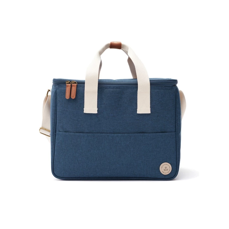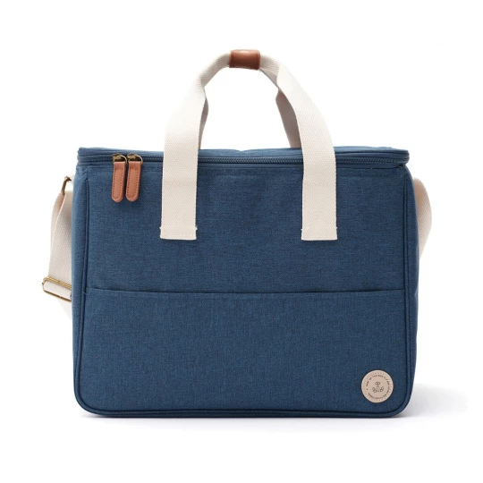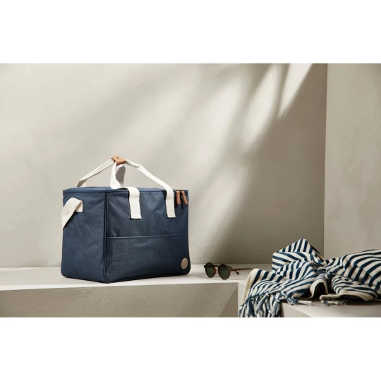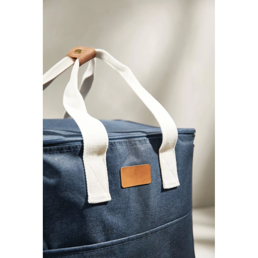 Pojemny koszyk termoizolacyjny, wykonany w 50% z poliestru pochodzącego z butelek PET z recyklingu, wnętrze z PEVA, z paskiem na ramię i uchwytami