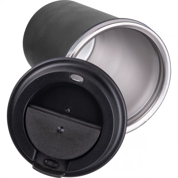Kubek z podwójnymi ściankami ze stali nierdzewnej, z zewnątrz z plastikową powłoką z materiału pochodzącego z recyklingu, o pojemności 350 ml, z zamykanym ustnikiem. Kubek utrzymuje ciepło napoju przez 4 godziny.