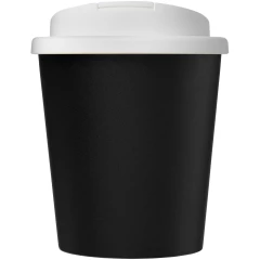Dwuwarstwowy, izolowany kubek ze szczelną zakręcaną pokrywą odporną na zalanie. Pokrywa zamykana jest na zatrzask, aby lepiej zapobiegać rozlaniom i wykonana została bez użycia silikonu, dzięki czemu kubek w pełni nadaje się do recyklingu. Kubek wykonany jest w 100% z polipropylenu z recyklingu, a pokrywka z polipropylenu klasy spożywczej. Odcienie czerni lub bieli mogą się różnić. W przypadku opcji białej występuje efekt tekstury kolorystycznej, co wynika z natury materiału pochodzącego z recyklingu. Zgodny z EN12875-1; nadaje się do mycia w zmywarce oraz podgrzewania w kuchence mikrofalowej. Pojemność 250 ml. Dostarczany w torbie, którą można kompostować w domu. Wyprodukowano w Wielkiej Brytanii. Produkt wolny od BPA. Można myć w zmywarce.