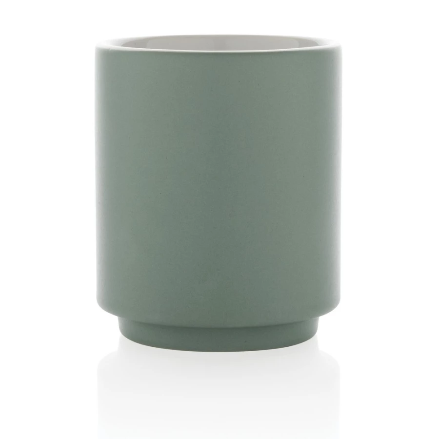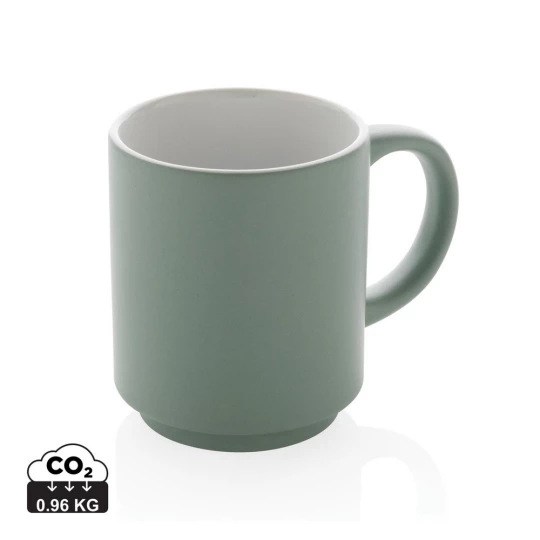 Kubek ceramiczny 180 ml, specjalna konstrukcja umożliwia przechowywanie kubków jeden na drugim co pozwala na oszczędność miejsca, można myć w zmywarce, w pudełku z papieru kraftowego, ślad węglowy produktu: 0,96 kg CO2