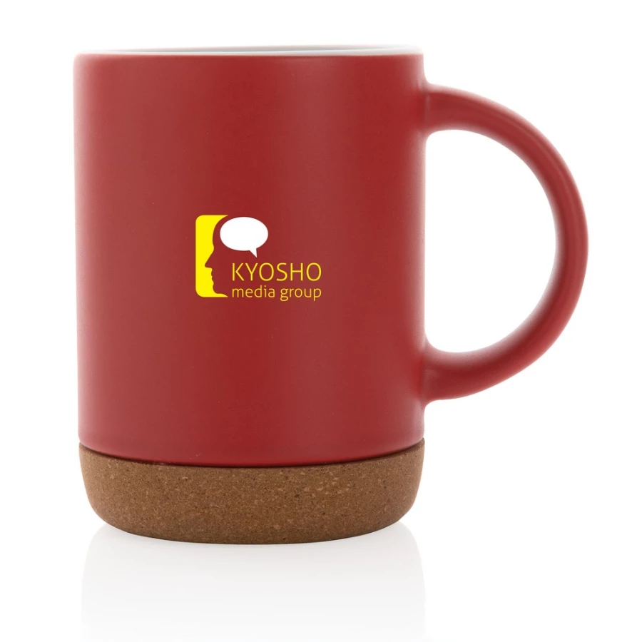 Kubek ceramiczny 280 ml, korkowa podstawa, nie należy używać w kuchence mikrofalowej, zalecane mycie ręczne, ślad węglowy produktu: 1,39 kg CO2