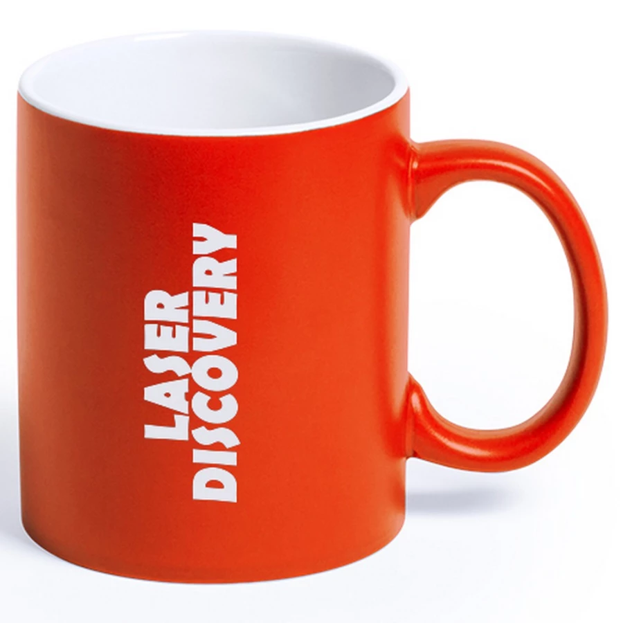 Kubek ceramiczny 350 ml z białym wnętrzem, grawer ukazuje powierzchnię w kolorze wnętrza
