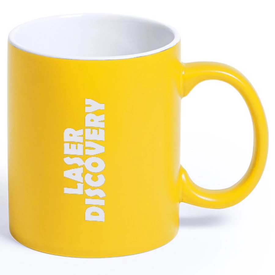 Kubek ceramiczny 350 ml z białym wnętrzem, grawer ukazuje powierzchnię w kolorze wnętrza