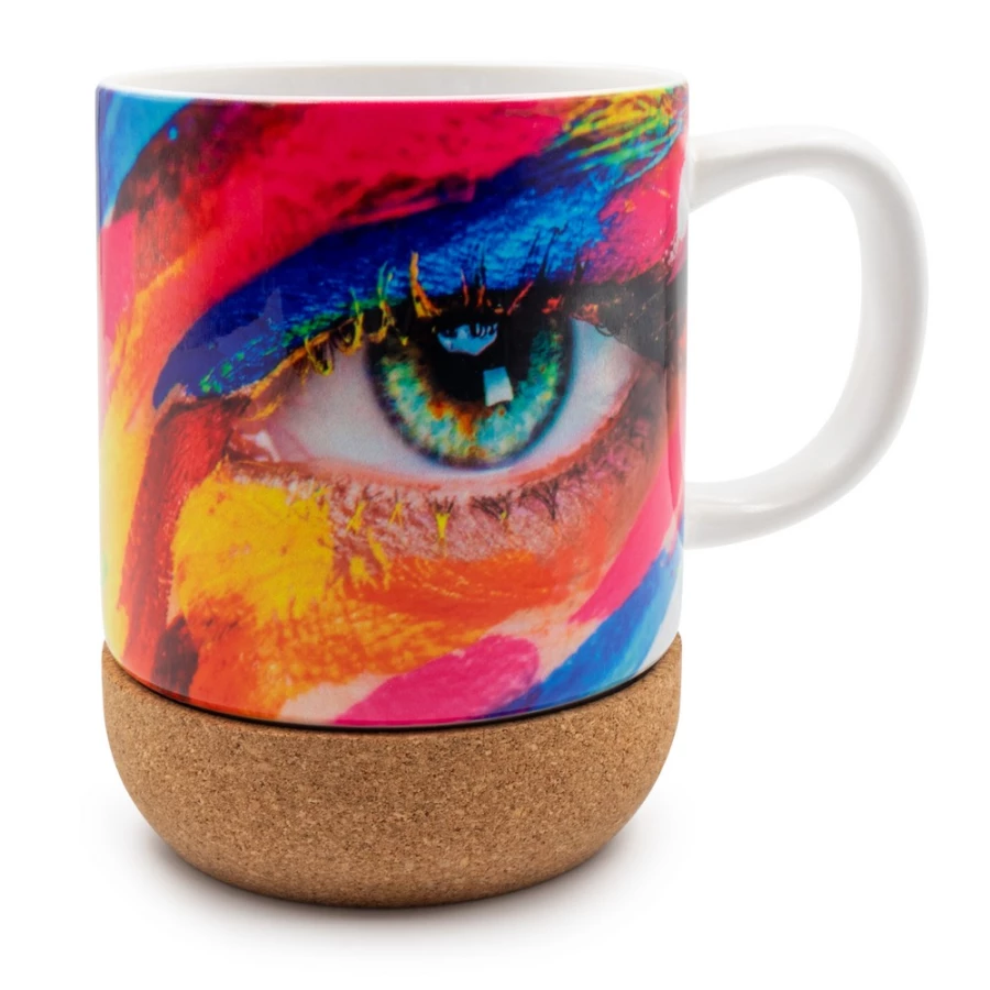 Kubek ceramiczny 370 ml pod sublimację, po zdjęciu korkowej podstawy kubek można myć w zmywarce