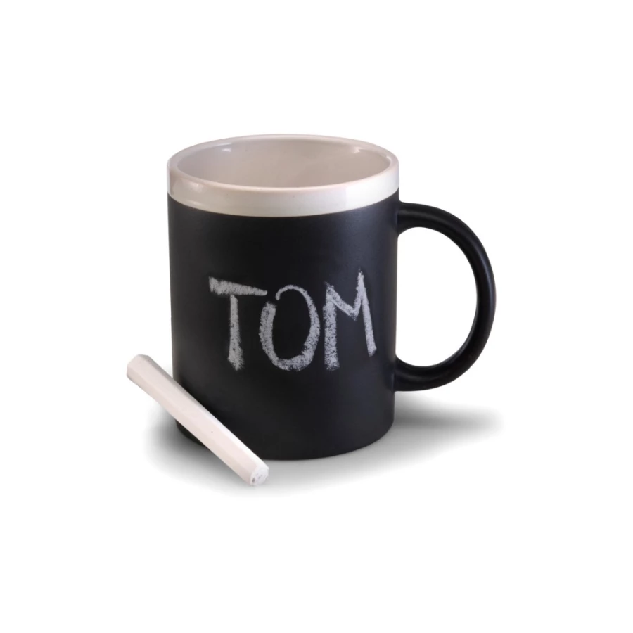 Kubek ceramiczny 300 ml z czarnym panelem do rysowania, kreda w komplecie