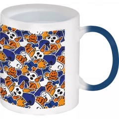 Efektowny kubek ceramiczny do sublimacji - kiedy jest zimny, nie widać nadruku, ale po wypełnieniu go ciepłym napojem reklama staje się widoczna. Zalecane mycie ręczne.