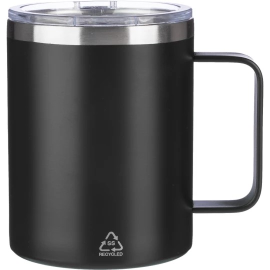 Kubek podróżny 300 ml, z podwójnymi ściankami dzięki którym zewnętrzna strona kubka nie nagrzewa się, matowe wykończenie, wieczko z otworem ułatwiającym picie ulubionego napoju, ikona stali z recyklingu na produkcie, produkt wykonany ze stali nierdzewnej z recyklingu