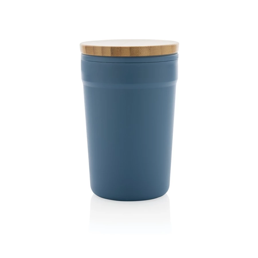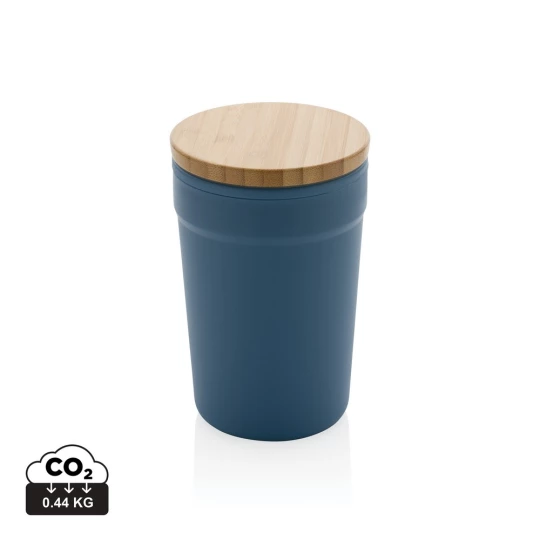 Kubek podróżny 300 ml, bambusowe wieczko, wykonany z PP z recyklingu z certyfikatem GRS, całkowita zawartość materiałów z recyklingu obliczona na podstawie wagi całkowitej przedmiotu: 52%, w ozdobnym pudełku z papieru kraftowego z certyfikatem FSC®, ślad węglowy produktu: 0,39 kg CO2