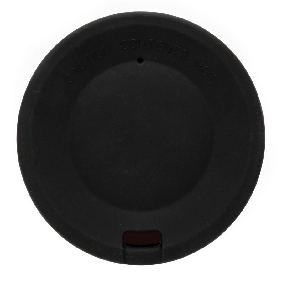Kubek podróżny 380 ml, wykonany z PLA, silikonowe wieczko i uchwyt, nie zawiera melaminy, ślad węglowy produktu: 0,89 kg CO2