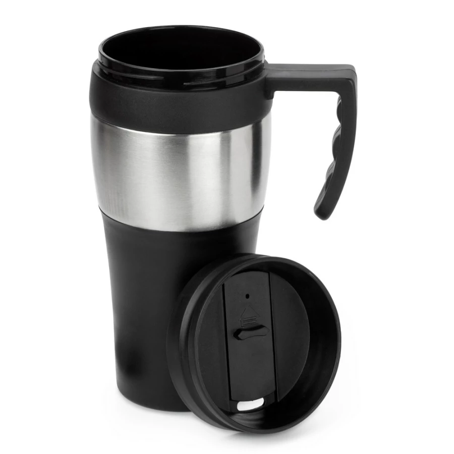 Kubek podróżny 500 ml z plastikowymi elementami i pierścieniem ze stali nierdzewnej, utrzymuje temperaturę napojów gorących do 4 godzin