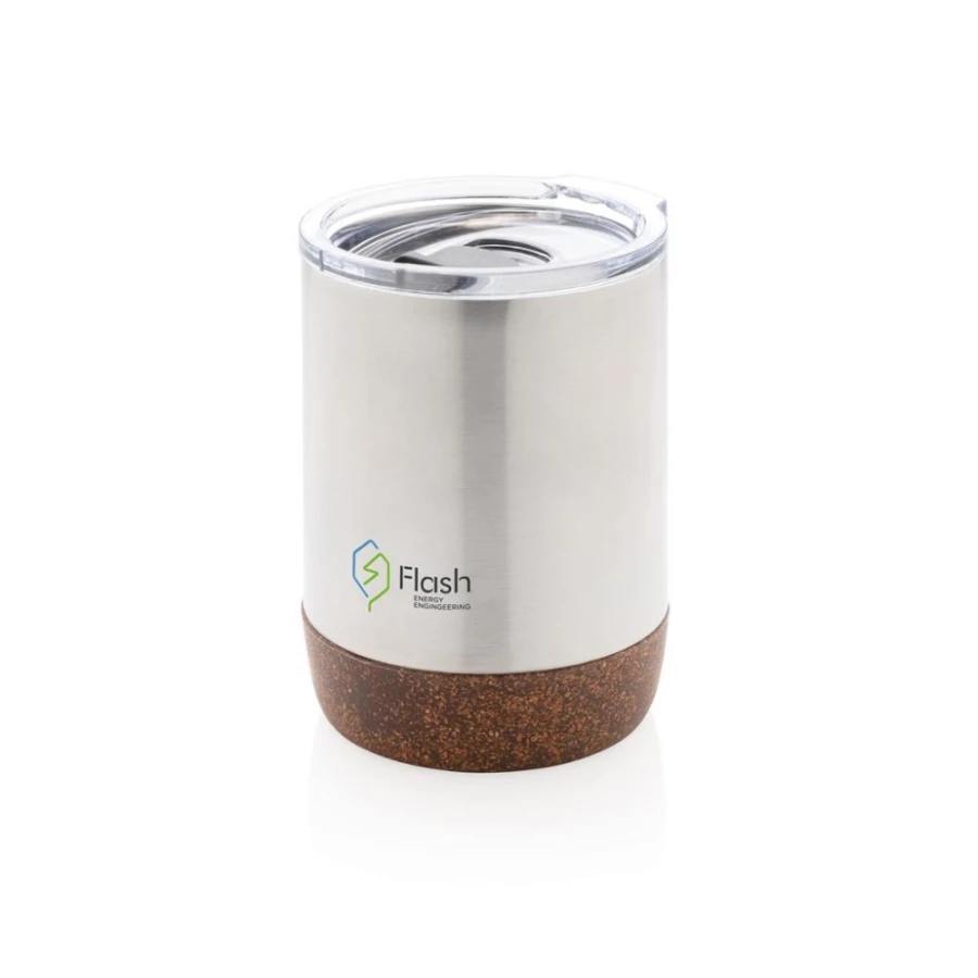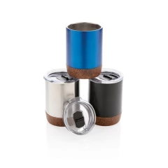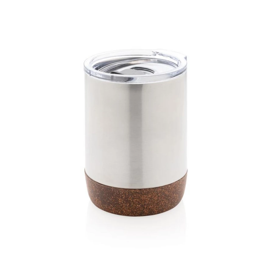 Korkowy kubek termiczny 180 ml, podwójne ścianki ze stali nierdzewnej z próżnią między ściankami, wewnątrz stal nierdzewna 304, na zewnątrz stal nierdzewna 201, korkowa podstawa, pasuje do większości ekspresów do kawy, utrzymuje temperaturę napojów gorących do 20 godzin oraz zimnych do 15 godzin