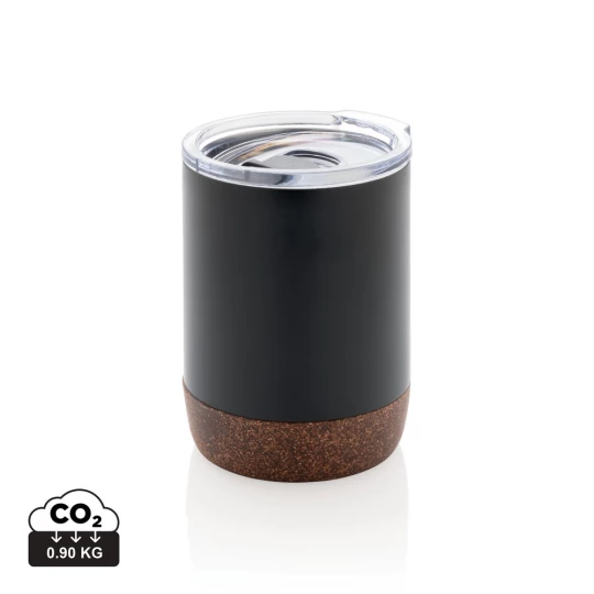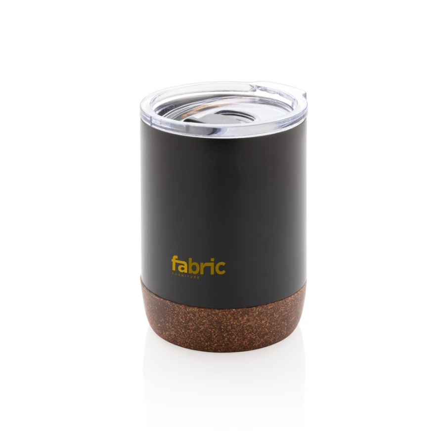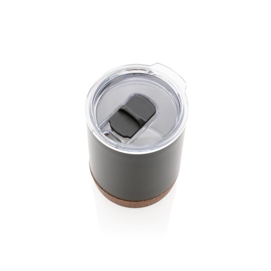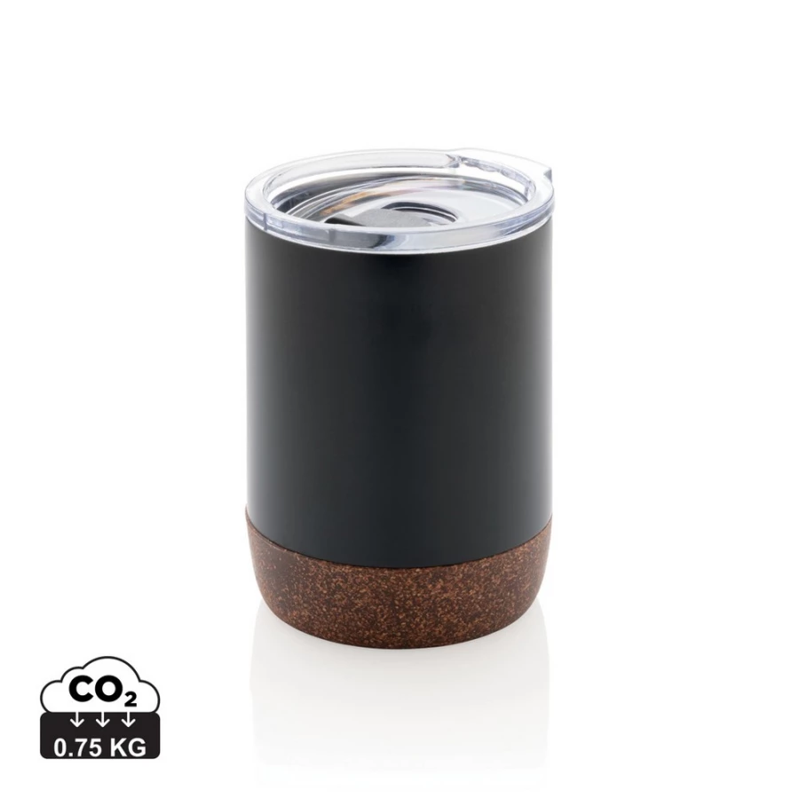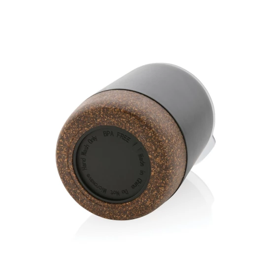 Korkowy kubek termiczny 180 ml z korkową podstawą, wykonany ze stali z recyklingu z certyfikatem RCS, całkowita zawartość materiałów z recyklingu obliczona na podstawie wagi całkowitej produktu: 69%, podwójne ścianki ze stali nierdzewnej z próżnią między ściankami, korkowa podstawa, pasuje do większości ekspresów do kawy, utrzymuje temperaturę napojów gorących do 10 godzin oraz zimnych do 15 godzin