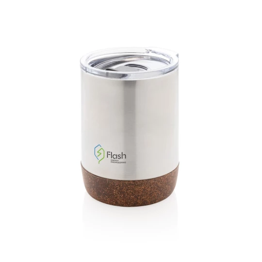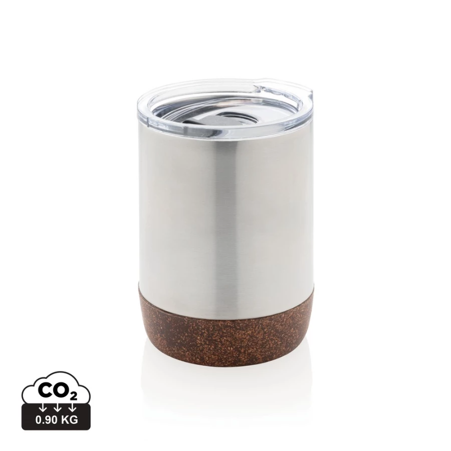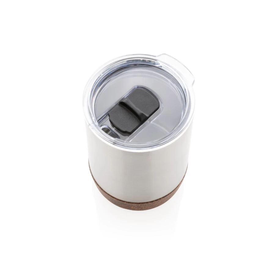 Korkowy kubek termiczny 180 ml z korkową podstawą, wykonany ze stali z recyklingu z certyfikatem RCS, całkowita zawartość materiałów z recyklingu obliczona na podstawie wagi całkowitej produktu: 69%, podwójne ścianki ze stali nierdzewnej z próżnią między ściankami, korkowa podstawa, pasuje do większości ekspresów do kawy, utrzymuje temperaturę napojów gorących do 10 godzin oraz zimnych do 15 godzin