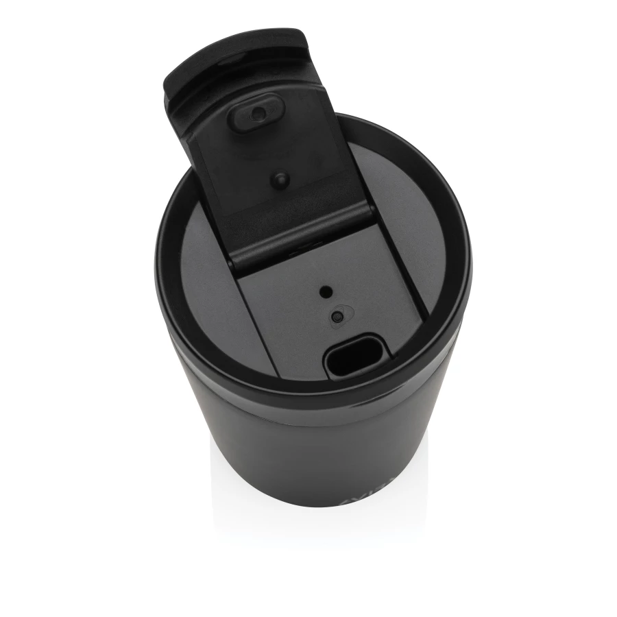 Kubek termiczny 300 ml, podwójne ścianki ze stali nierdzewnej z próżnią pomiędzy, wykonany ze stali nierdzewnej z recyklingu z certyfikatem RCS, całkowita zawartość materiałów z recyklingu obliczona na podstawie wagi całkowitej przedmiotu: 71%, w pudełku z papieru kraftowego z certyfikatem FSC®, pudełko można wykorzystać jako stojak na telefon lub doniczkę