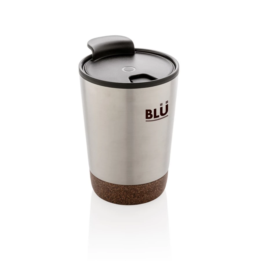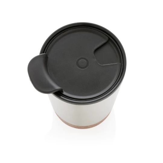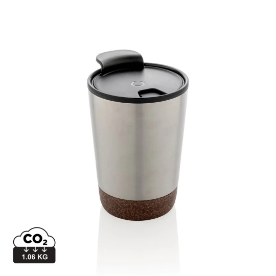 Kubek termiczny 300 ml, podwójne ścianki, wnętrze z PP z recyklingu z certyfikatem GRS, całkowita zawartość materiałów z recyklingu obliczona na podstawie wagi całkowitej produktu: 52%, korkowe elementy na zewnątrz, utrzymuje temperaturę napojów gorących do 4 godzin oraz zimnych do 6 godzin