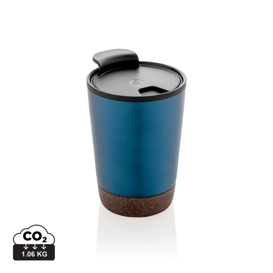 Kubek termiczny 300 ml, podwójne ścianki, wnętrze z PP z recyklingu z certyfikatem GRS, całkowita zawartość materiałów z recyklingu obliczona na podstawie wagi całkowitej produktu: 52%, korkowe elementy na zewnątrz, utrzymuje temperaturę napojów gorących do 4 godzin oraz zimnych do 6 godzin