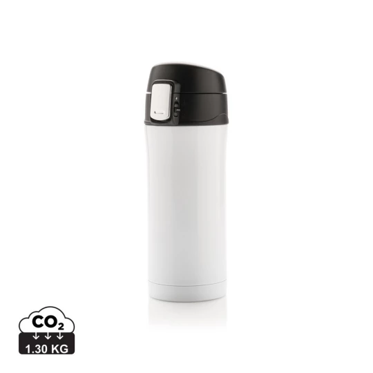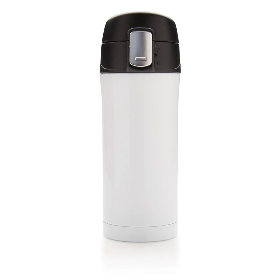Kubek termiczny 300 ml, podwójne ścianki ze stali nierdzewnej z próżnią pomiędzy, obsługa jedną ręką, wykonany z materiałów pochodzących z recyklingu z certyfikatem RCS, całkowita zawartość materiałów z recyklingu obliczona na podstawie wagi całkowitej przedmiotu: 71%, w pudełku z papieru kraftowego z certyfikatem FSC®, utrzymuje temperaturę napojów gorących do 20 godzin oraz zimnych do 15 godzin