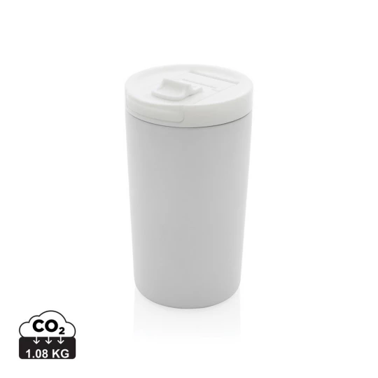 Kubek termiczny 300 ml, podwójne ścianki z próżnią pomiędzy, wykonany z materiałów pochodzących z recyklingu z certyfikatem RCS, całkowita zawartość materiałów z recyklingu obliczona na podstawie wagi całkowitej przedmiotu: 80%, w pudełku z papieru kraftowego z certyfikatem FSC®, utrzymuje temperaturę napojów gorących do 10 godzin oraz zimnych do 15 godzin