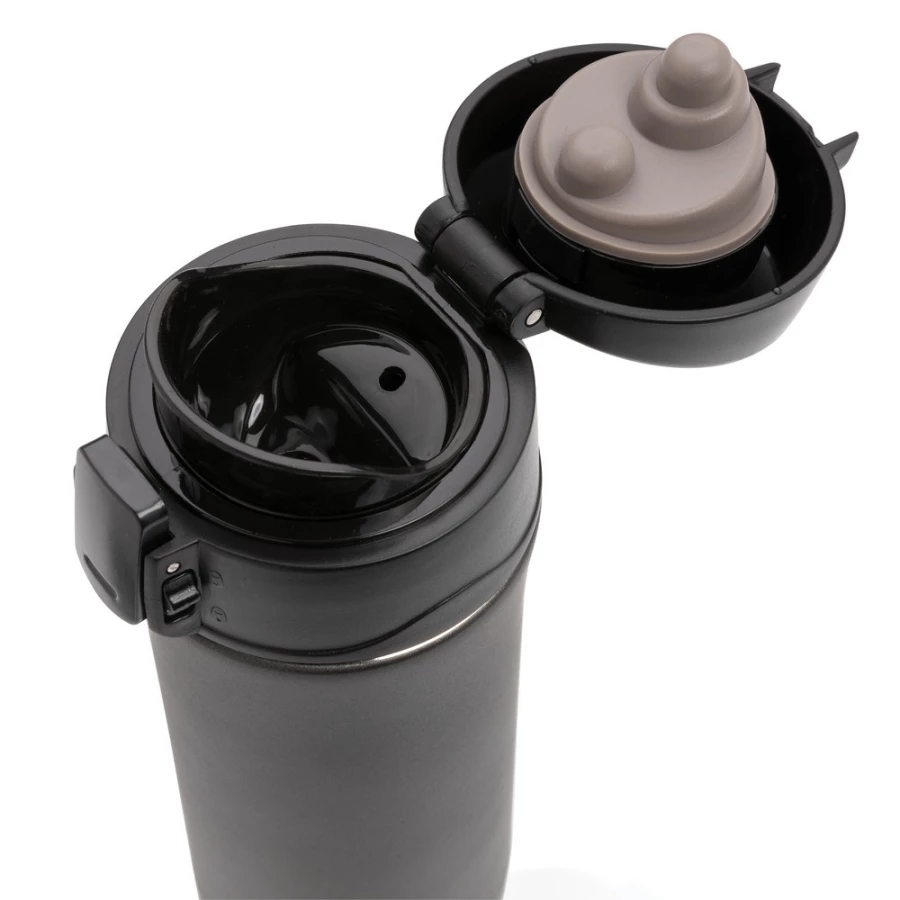 Kubek termiczny 300 ml, wykonany ze stali nierdzewnej, podwójne ścianki z próżnią między ściankami, szczelne, zamykane wieczko, które można myć w zmywarce, nie wymaga obsługi oburącz, pasuje do każdego uchwytu samochodowego, utrzymuje temperaturę napojów gorących do 20 godzin