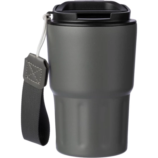 Kubek termiczny 320 ml, posiada podwójne ścianki ze stali nierdzewnej z próżnią między ściankami, co spowalnia oddawanie temperatury na zewnątrz, zachowując funkcje termosu, pasek ułatwiający noszenie lub przypięcie, plastikowe wieczko z otwarciem umożliwiającym łatwą obsługę jedną ręką, dobrze trzyma temperaturę ciepłych i zimnych napojów, utrzymuje temperaturę napojów gorących do 10 godzin +leakproof
