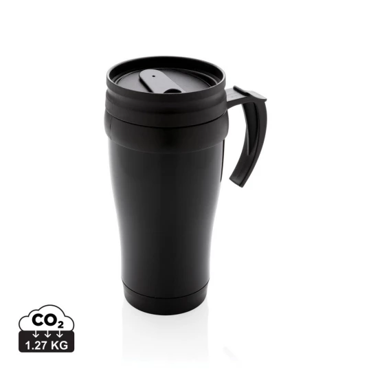 Kubek termiczny 350 ml, stal nierdzewna na zewnątrz, wnętrze z PP, czarny spód i wieczko, klasa termiczna: 1