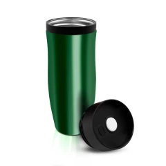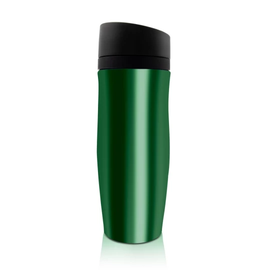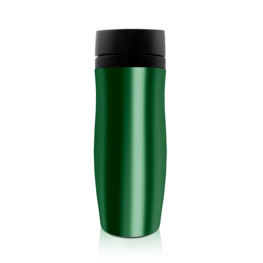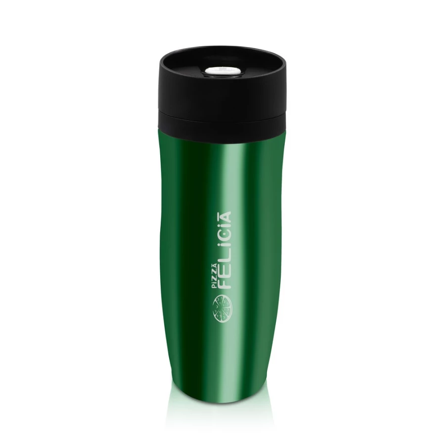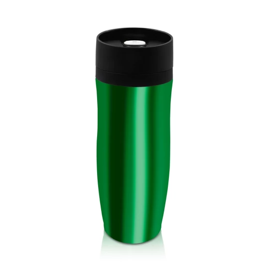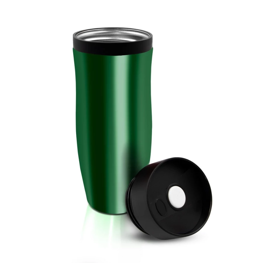 Kubek termiczny 375 ml Air Gifts, posiada podwójne ścianki ze stali nierdzewnej z miedzianą izolacją próżniową, co spowalnia oddawanie temperatury na zewnątrz, zachowując funkcje termosu, plastikowe wieczko z przyciskiem otwarcia/zamknięcia ustnika umożliwiającym obsługę jedną ręką, błyszczące wykończenie, utrzymuje temperaturę napojów gorących do 20 godzin +leakproof