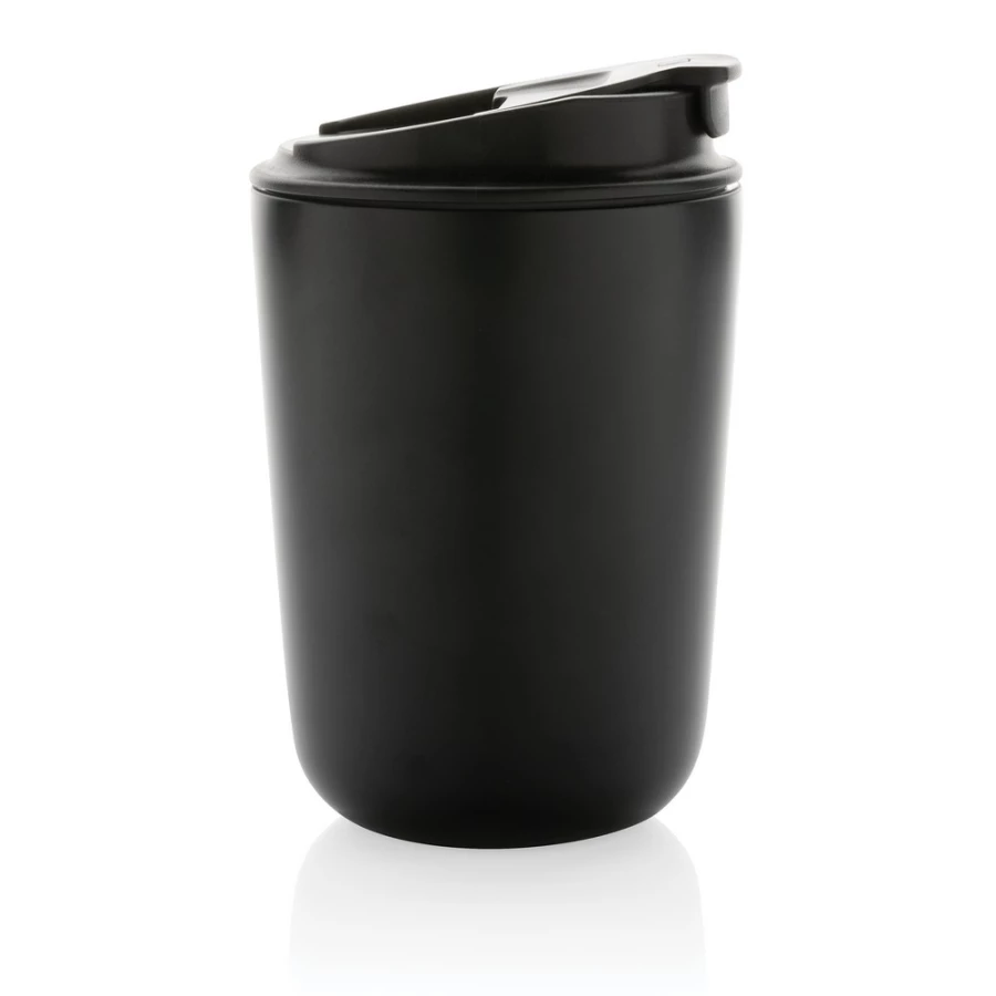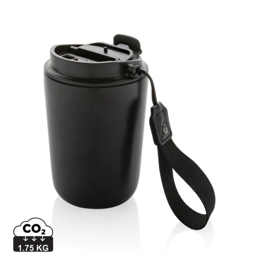 Kubek termiczny 380 ml, szczelny, wykonany ze stali nierdzewnej z recyklingu z certyfikatem RCS, całkowita zawartość materiałów z recyklingu obliczona w oparciu o wagę całkowitą przedmiotu: 74%, ślad węglowy produktu: 1,75 kg CO2