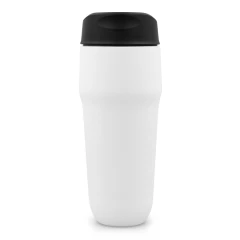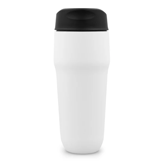 Kubek termiczny 400 ml Air Gifts, posiada podwójne ścianki ze stali nierdzewnej i ceramiki z próżnią między ściankami, co spowalnia oddawanie temperatury na zewnątrz, zachowując funkcje termosu, plastikowe wieczko z przyciskiem otwarcia/zamknięcia ustnika umożliwiającym obsługę jedną ręką, wieczko może zostać rozkręcone w celu ułatwienia czyszczenia, matowe wykończenie, produkt wykonany ze stali nierdzewnej, ceramiki i plastiku, utrzymuje temperaturę napojów gorących do 15 godzin +leakproof