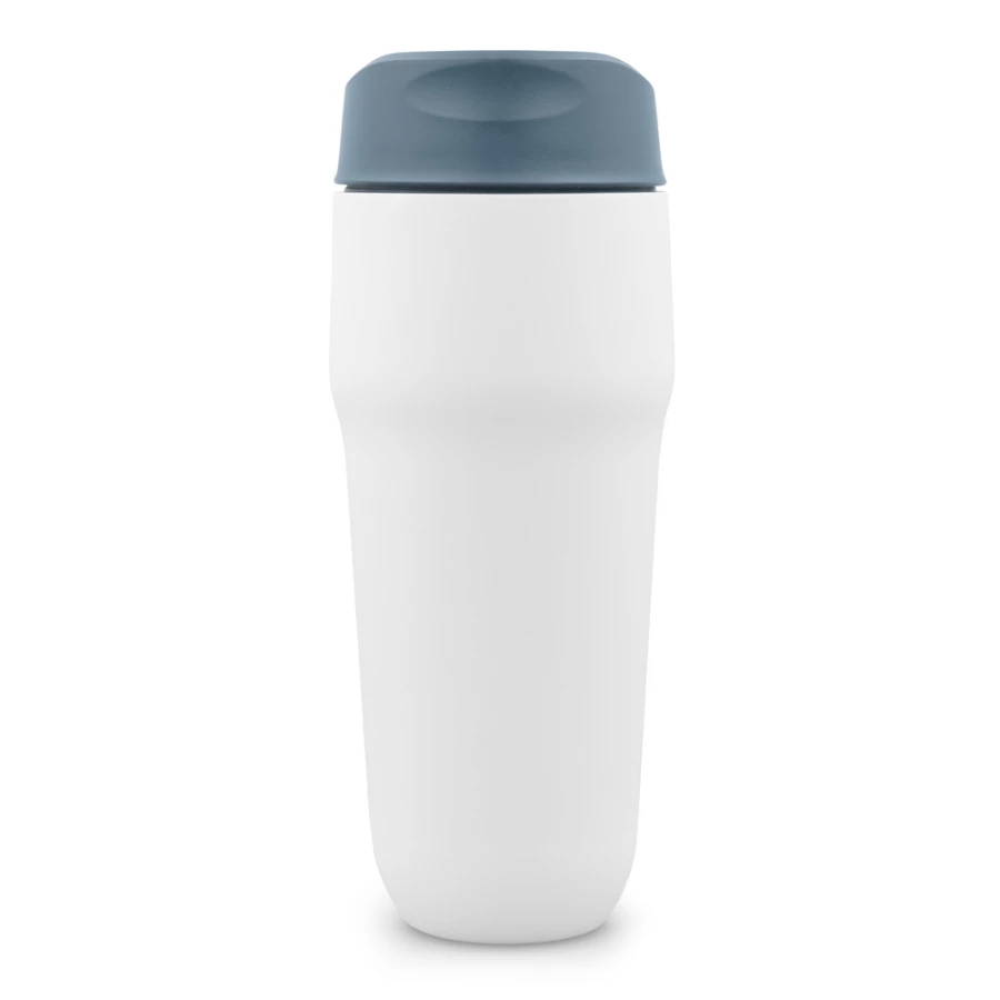 Kubek termiczny 400 ml Air Gifts, posiada podwójne ścianki ze stali nierdzewnej i ceramiki z próżnią między ściankami, co spowalnia oddawanie temperatury na zewnątrz, zachowując funkcje termosu, plastikowe wieczko z przyciskiem otwarcia/zamknięcia ustnika umożliwiającym obsługę jedną ręką, wieczko może zostać rozkręcone w celu ułatwienia czyszczenia, matowe wykończenie, produkt wykonany ze stali nierdzewnej, ceramiki i plastiku, utrzymuje temperaturę napojów gorących do 15 godzin +leakproof