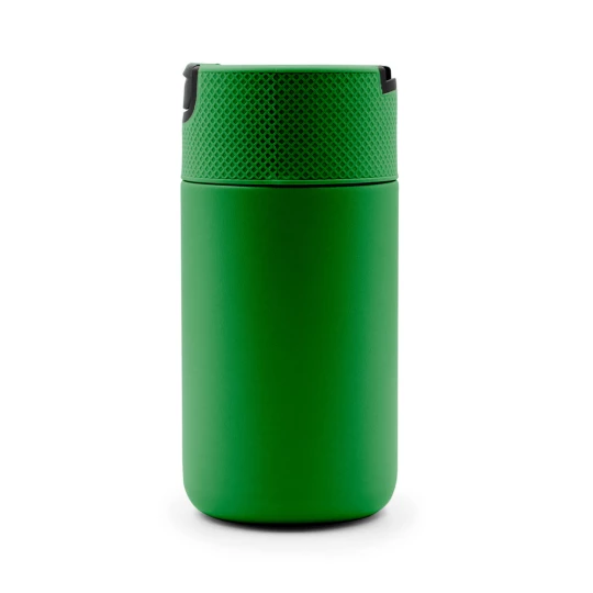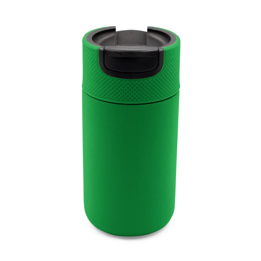Kubek termiczny 400 ml Air Gifts, posiada podwójne ścianki ze stali nierdzewnej z próżnią między ściankami, co spowalnia oddawanie temperatury na zewnątrz, zachowując funkcje termosu, plastikowe wieczko z zamknięciem umożliwiającym obsługę jedną ręką, matowe wykończenie, utrzymuje temperaturę napojów gorących do 10 godzin +leakproof