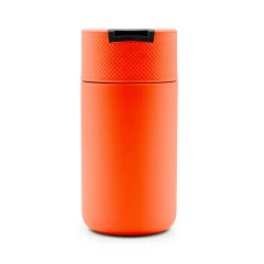 Kubek termiczny 400 ml Air Gifts, posiada podwójne ścianki ze stali nierdzewnej z próżnią między ściankami, co spowalnia oddawanie temperatury na zewnątrz, zachowując funkcje termosu, plastikowe wieczko z zamknięciem umożliwiającym obsługę jedną ręką, matowe wykończenie, utrzymuje temperaturę napojów gorących do 10 godzin +leakproof
