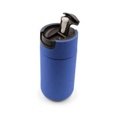 Kubek termiczny 400 ml Air Gifts, posiada podwójne ścianki ze stali nierdzewnej z próżnią między ściankami, co spowalnia oddawanie temperatury na zewnątrz, zachowując funkcje termosu, plastikowe wieczko z zamknięciem umożliwiającym obsługę jedną ręką, matowe wykończenie, utrzymuje temperaturę napojów gorących do 10 godzin +leakproof