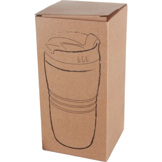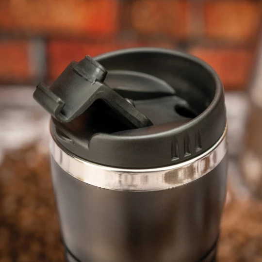 Kubek termiczny wykonany w środku ze stali nierdzewnej, a na zewnątrz z plastiku. Posiada szczelną pokrywkę i powłokę antypoślizgową. Pojemność 450 ml.