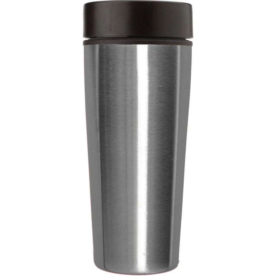 Kubek termiczny 450 ml, podwójne ścianki, obudowa ze stali nierdzewnej, wnętrze z plastiku, utrzymuje temperaturę napojów gorących do 4 godzin +leakproof