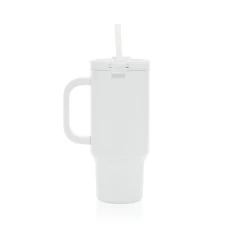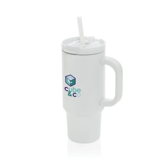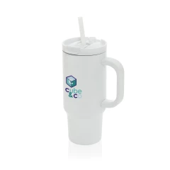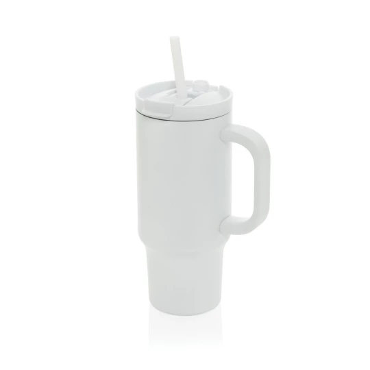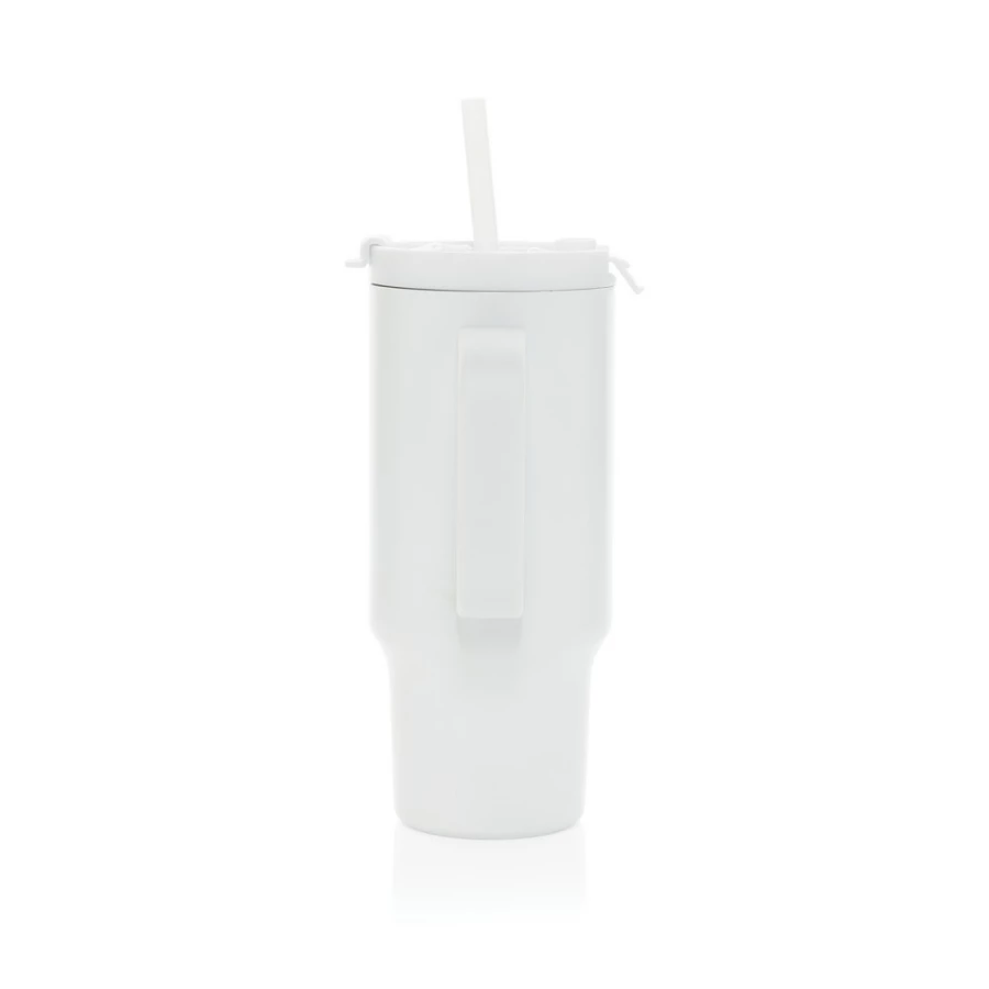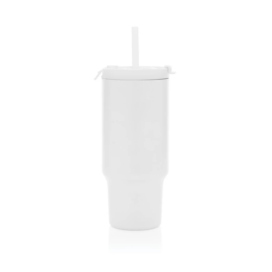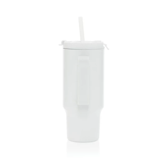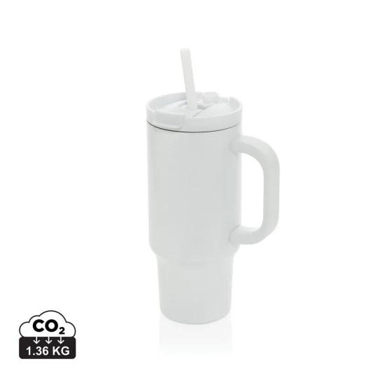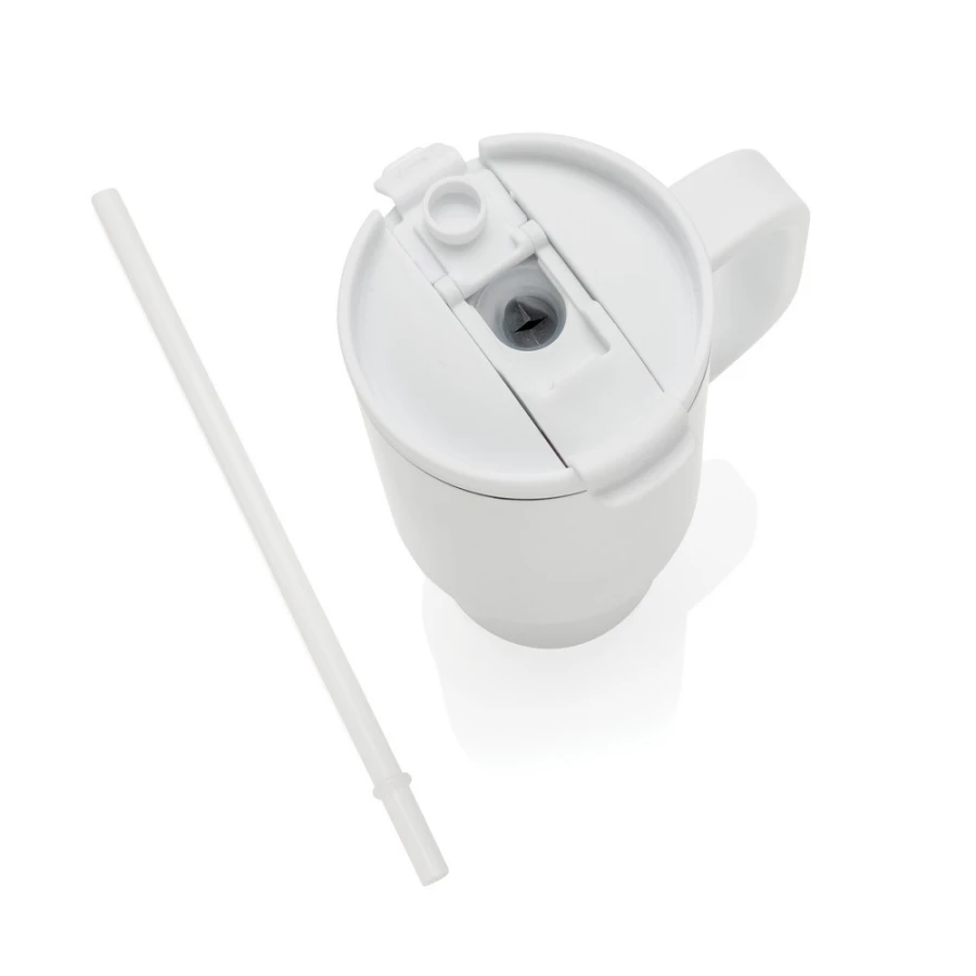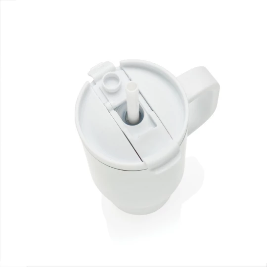 Kubek termiczny 480 ml, podwójne ścianki z próżnią pomiędzy dzięki czemu kubek posiada funkcję termosu, posiada słomkę i szeroki otwór do picia, wykonany z materiałów z recyklingu, całkowita zawartość materiałów z recyklingu obliczona na podstawie wagi całkowitej produktu: 73%
