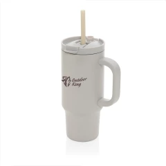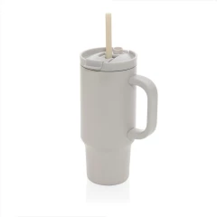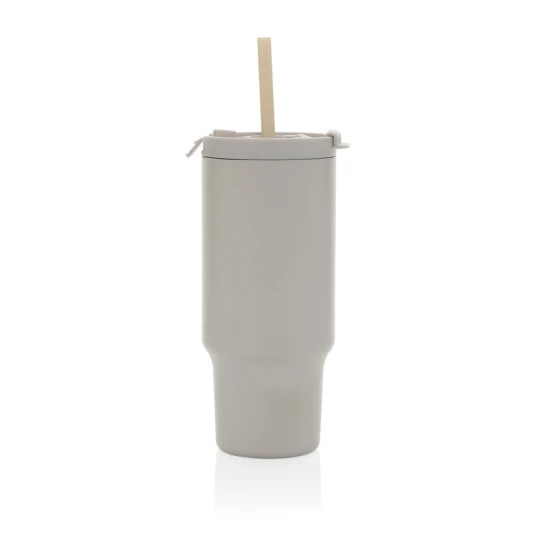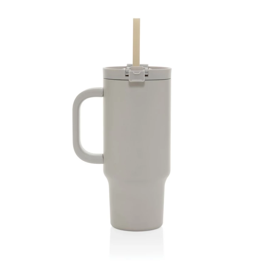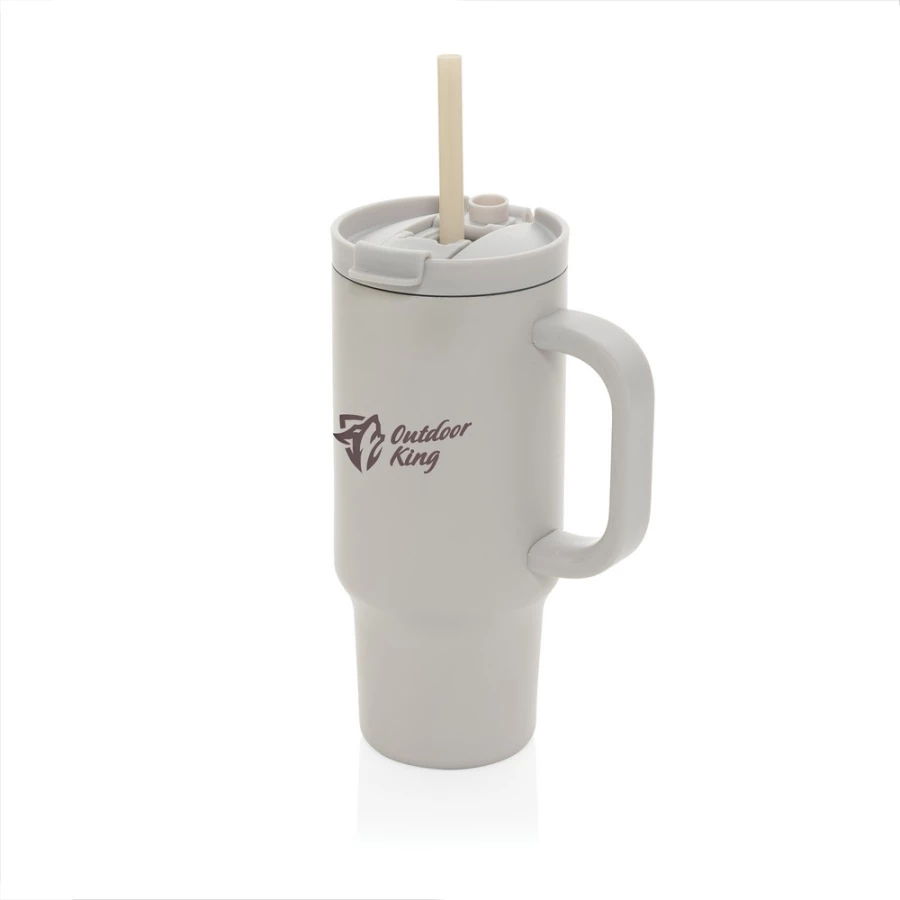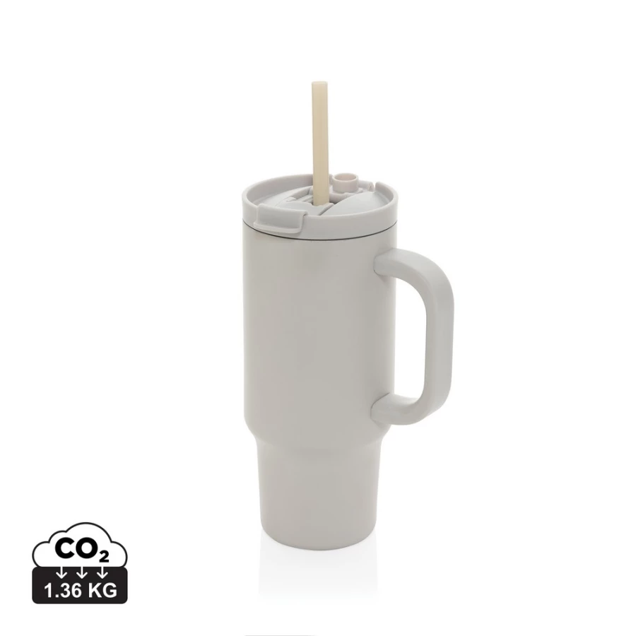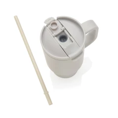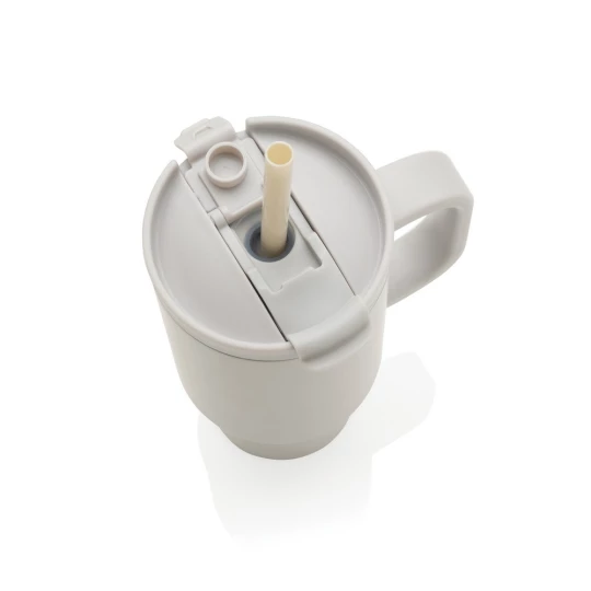 Kubek termiczny 480 ml, podwójne ścianki z próżnią pomiędzy dzięki czemu kubek posiada funkcję termosu, posiada słomkę i szeroki otwór do picia, wykonany z materiałów z recyklingu, całkowita zawartość materiałów z recyklingu obliczona na podstawie wagi całkowitej produktu: 73%