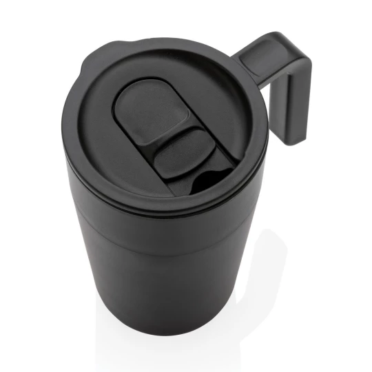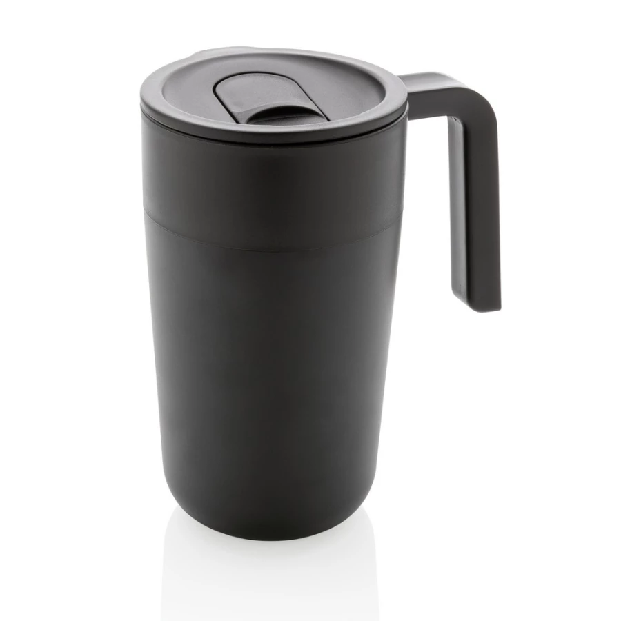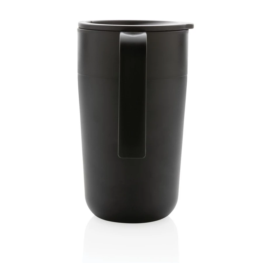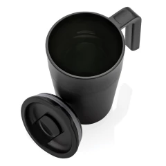 Kubek termiczny 480 ml z uchwytem, szczelne wieczko, wykonany z PP z recyklingu i stali nierdzewnej z recyklingu z certyfikatem GRS (Global Recycled Standard) który gwarantuje, że wykorzystane materiały pochodzą z recyklingu, całkowita zawartość materiału z recyklingu obliczona w oparciu o wagę całkowitą przedmiotu: 60%, w pudełku z papieru kraftowego z certyfikatem FSC® (Forest Stewardship Council), utrzymuje temperaturę napojów gorących do 4 godzin