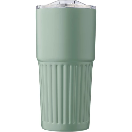 Kubek termiczny 500 ml ze stali nierdzewnej, posiada podwójne ścianki, które spowalniają oddawanie temperatury na zewnątrz, zewnętrzna część wykonana jest ze stali nierdzewnej 201, a wewnętrzna ścianka ze stali nierdzewnej 304, zamykane wieczko wykonane z AS, ikona recyklingu na produkcie, zapakowany w brązowe kartonowe pudełko, utrzymuje temperaturę napojów gorących do 15 godzin