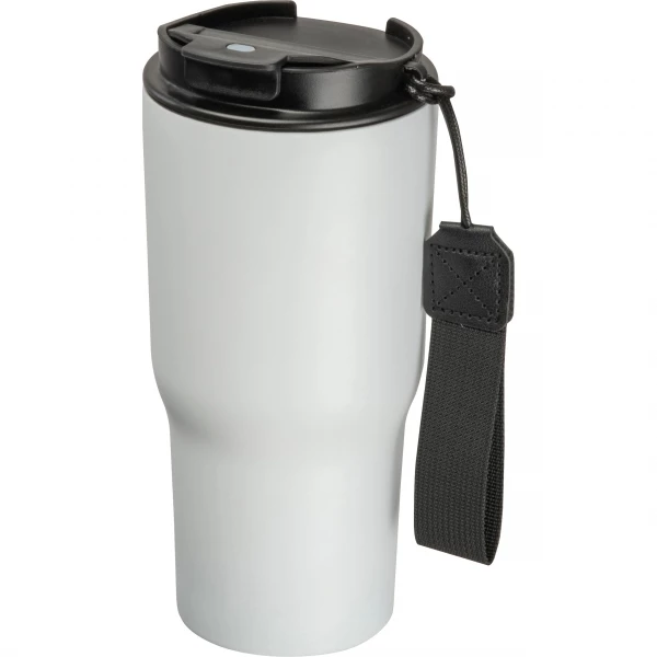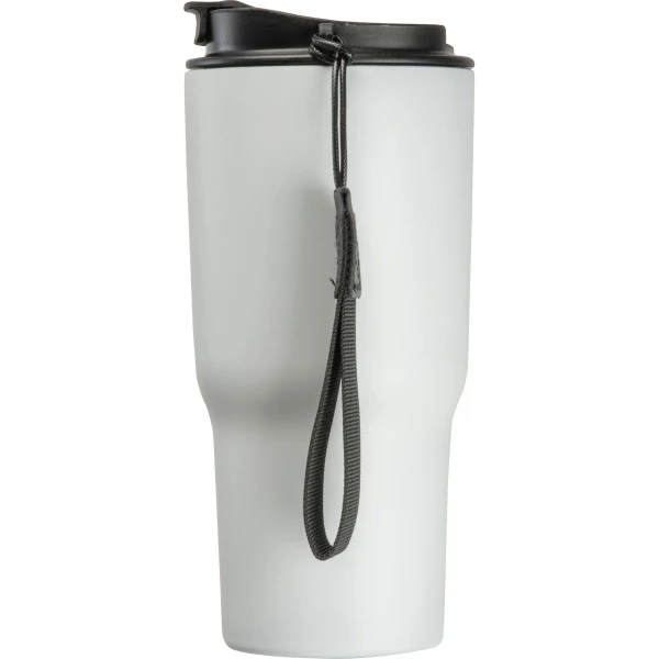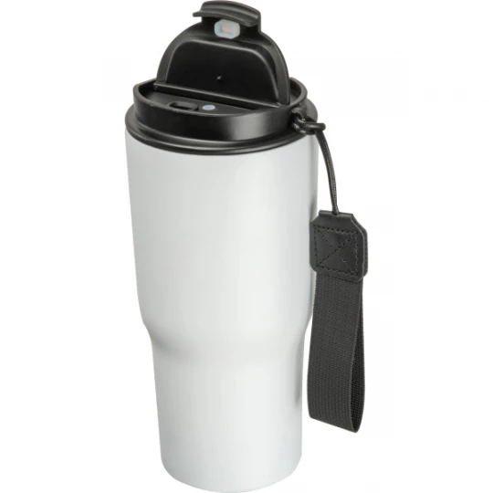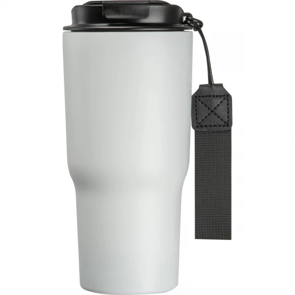 Kubek termiczny, wykonany ze stali nierdzewnej z recyklingu, z podwójnymi ściankami, o pojemności 550 ml. Kubek posiada praktyczny pasek do przenoszenia.