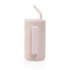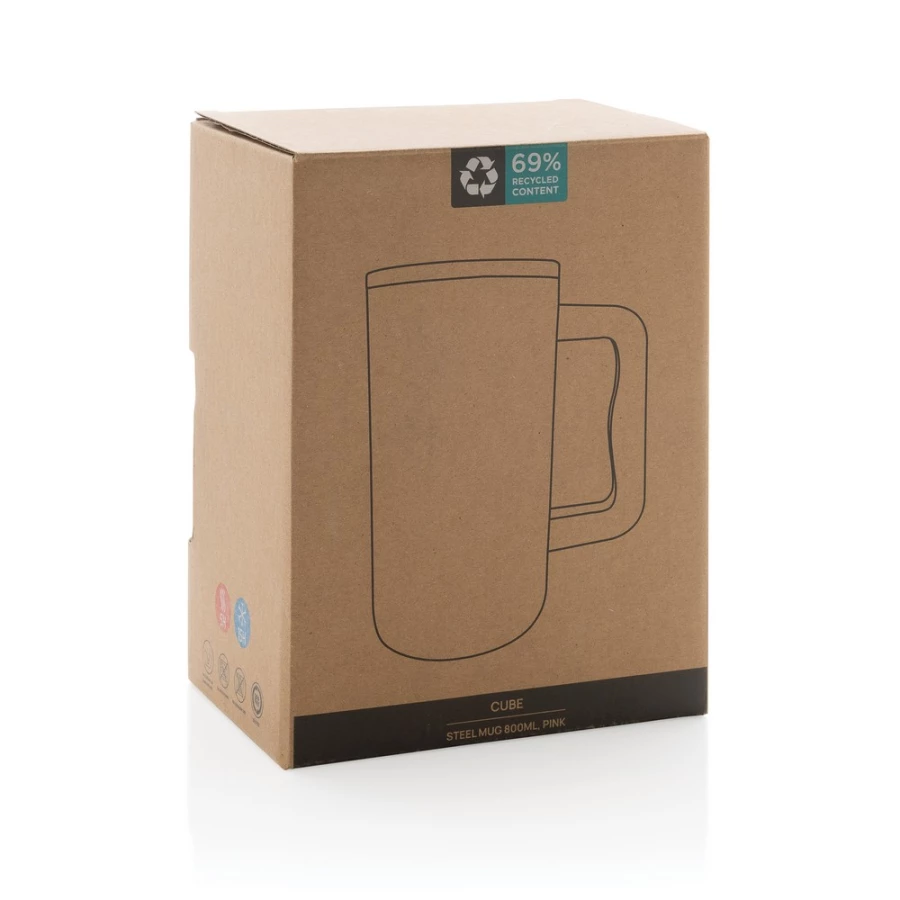 Kubek termiczny 800 ml, posiada słomkę z silikonową nakładką, zakręcane wieczko, wykonany ze stali nierdzewnej z recyklingu, podwójne ścianki ze stali nierdzewnej z próżnią między ściankami, dzięki czemu zachowuje funkcje termosu i długo utrzymuje temperaturę nie oddając jej na zewnątrz, zalecane mycie ręczne