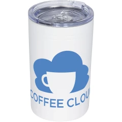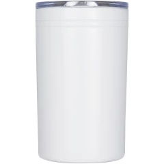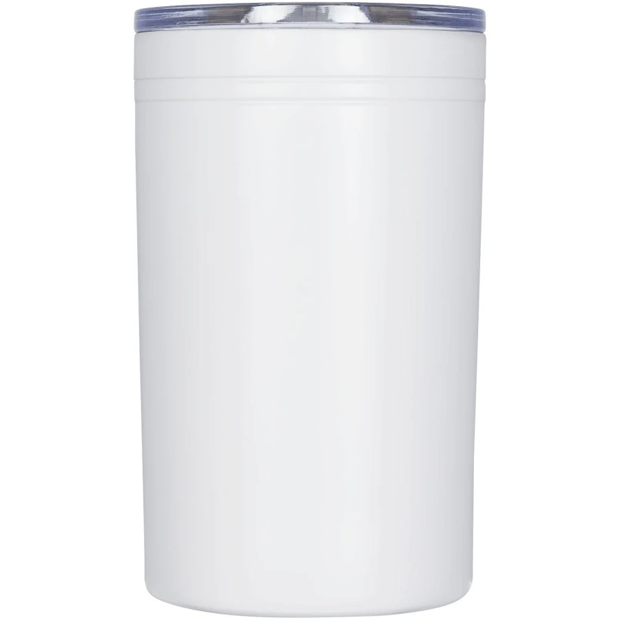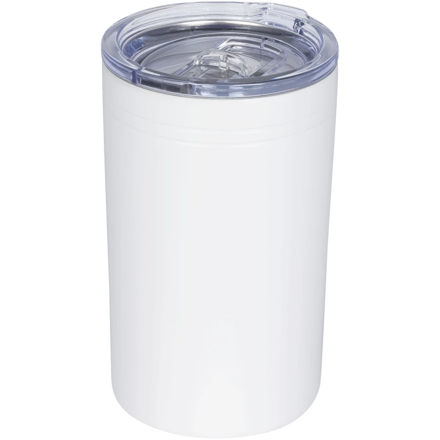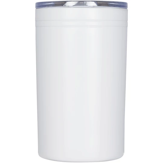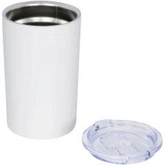 Kubek o podwójnych ściankach, izolowany próżniowo. Przeźroczyste, wciskane wieczko z przesuwanym zamknięciem. Działa jak kubek lub termos. Pojemność 330ml.