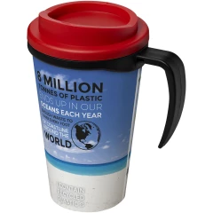 Dwuwarstwowy, izolowany kubek z zakręcaną pokrywą odporną na zalanie i uchwytem. Zewnętrzna warstwa kubka wykonana jest z tworzywa sztucznego pochodzącego z recyklingu. Kubek charakteryzuje się pełnokolorowym, zawijanym wzorem dopasowanym do produktu, dzięki czemu jest trwały. Zgodny z EN12875-1; nadaje się do mycia w zmywarce oraz podgrzewania w kuchence mikrofalowej. Pojemność wynosi 350 ml. Mieszaj i łącz kolory, aby stworzyć idealny kubek. Skontaktuj się z działem obsługi klienta, aby uzyskać informacje o dodatkowych opcjach kolorystycznych. Wykonano w Wielkiej Brytanii. Oferowany w białym pudełku upominkowym. Produkt wolny od BPA. Można myć w zmywarce.
